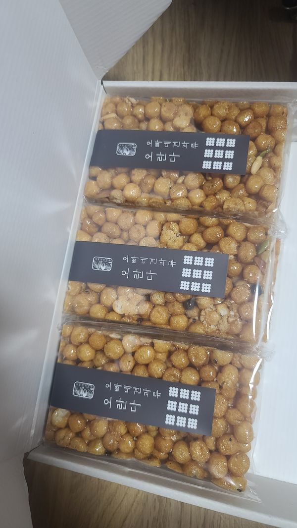 생각보다 많이 달고. 견과류가 적게들어있어요 포장이 고급스럽긴한데.. 포장재없이 실속가로 판매하셔도 좋을듯합니다.