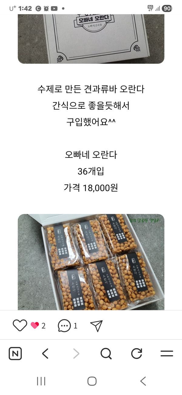 오란다주문~~오배송실수로 3박스주문(1박스당18봉)인데 1박스(9봉) 해서 2박스만 왔습니다. 이런 실수는 정말 실수가아닌거로 생각되는데요. 명절연휴라서 명절마치고 처리하신다하여 어렵게 받은 오란다.(9봉들이4박스추가받음) 저뿐아니라 모든고객이 다 그런걸로 압니다. 또한 내이버검색하니 가격도 이게더비싸네요.18,000원인데 여기서는 30,000 원대라니 팔도감측은 제대로 알고 판매하셔야할듯합니다. 위에사진첨부하겠습니다. 혹시 구매하실분은참고하세요.(오빠네 견과류 오란다) 제가 이번명절에 선물주려고 했는데 주지도못했슴다ㅠ
