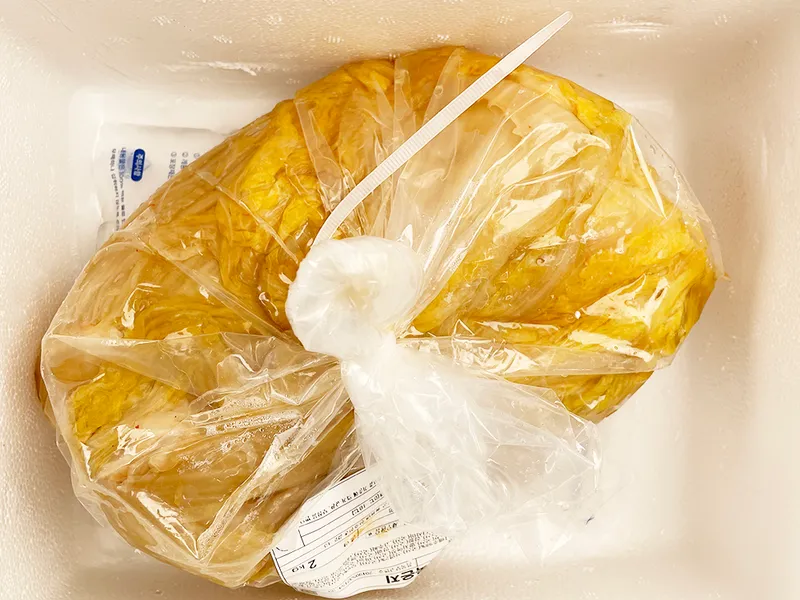 저희 묵은지는 인위적으로 익힌 묵은지가 아닙니다. 6개월 간 5도 이하의 온도에서 저온 숙성을 거쳐 딱 맛있게 익은 진짜 묵은지입니다. 그래서 양념을 씻어내도 그 깊은 감칠맛은 변하지 않아요. 아삭한 식감도 오래 살아있답니다.