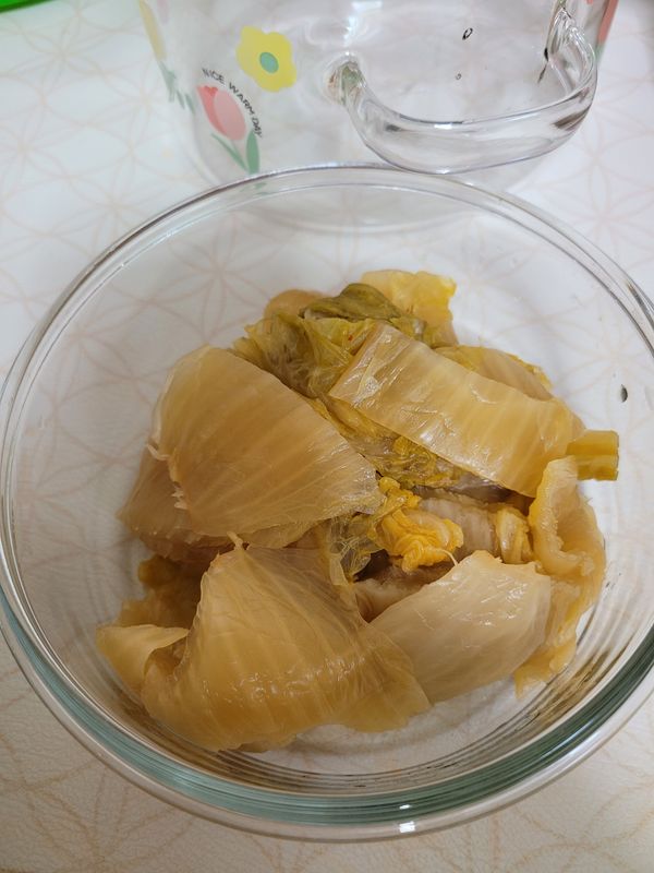 씻은 묵은지의 활용도는 무궁무진하다는 사실! 양념을 씻어내도 묵은지의 감칠맛은 살아있어 김치볶음밥에 넣어 드셔도 묵은지말이로 즐기셔도 맛나답니다. 특히 김밥에 넣어 드시면 찰떡궁합을 자랑합니다😋