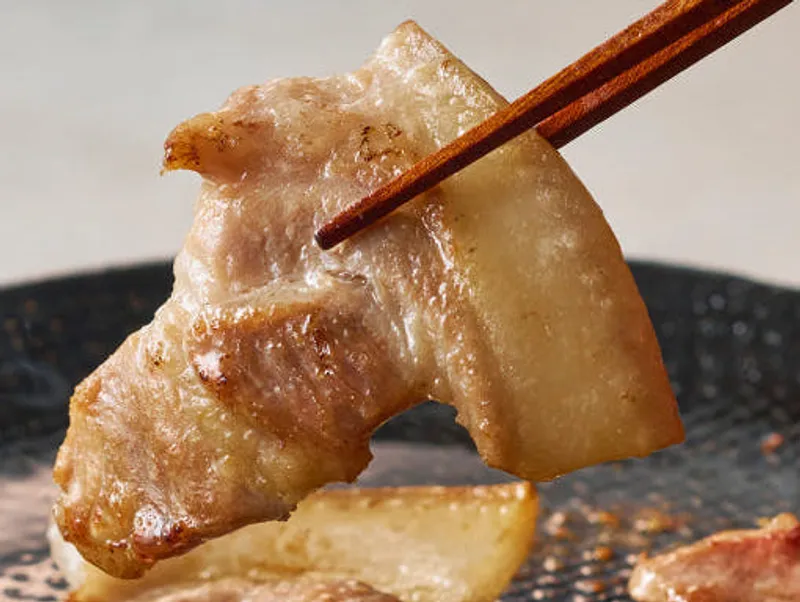 목살 안쪽 깊은 부위에서 소량만 얻어지는 특수부위로 결이 탄탄하게 잡혀 있어 씹는 맛이 뛰어납니다. 지방이 어느정도 있어 고기 본연의 고소한 풍미가 또렷하게 느껴지는 부위지요. 고기 마니아들 사이에서 '꼬들한 매력'으로 통하는 인기 특수부위입니다.