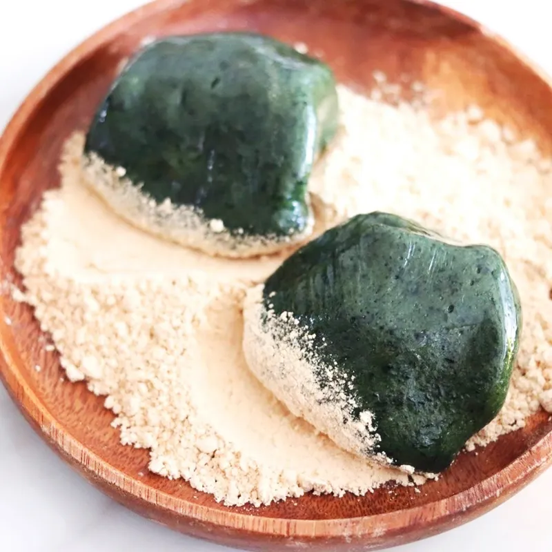 쑥 인절미를 구매하시면 국산 콩가루 100g을 함께 드리니 취향에 따라 양 조절하며 찍어 드세요.