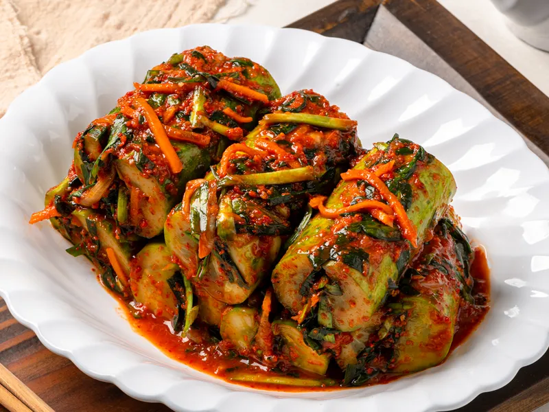 남도식 김치로 매콤하면서도 특유의 감칠맛과 깊은 향이 일품이에요. 아삭아삭한 오이의 식감과 맛깔나는 남도식 양념이 어우러져 최고 품질을 자랑해요! 100% 국내산 김치이니 믿고 드셔도 좋습니다.