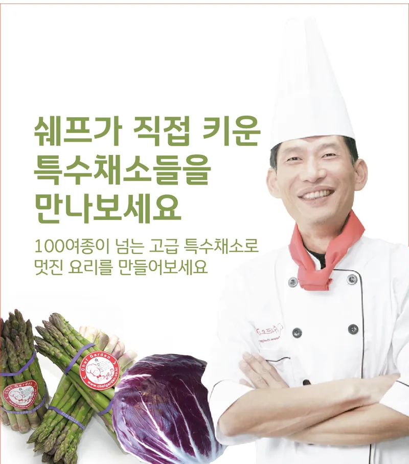 15년의 호텔 셰프 경력을 뒤로하고 경기도 이천에서 20년째 전문농업인의 삶을 살고 있어요. 저와 숙련된 동료들이 정성껏 재배한 채소로 여러분의 식탁이 행복해졌으면 좋겠어요.