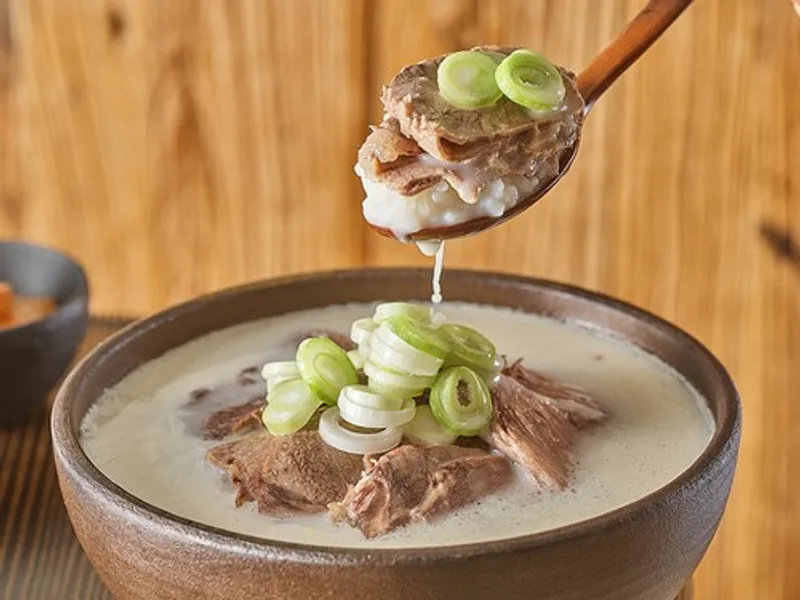 부드러운 고기와 사골의 깊은 풍미! 한우사골 고기곰탕