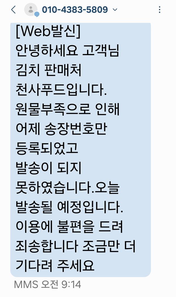 이걸 김치라고 판매하신건지.. 절임배추에 고추가루만 넣은것 같아요. 배추가 살아서 하늘을 날아갈 것 같네요. 명절 상차림에 어찌 내놔야 할지... 배송도 늦었고.. 환불하고 싶어요. 명절 연휴만 아니면 ㅠㅠ