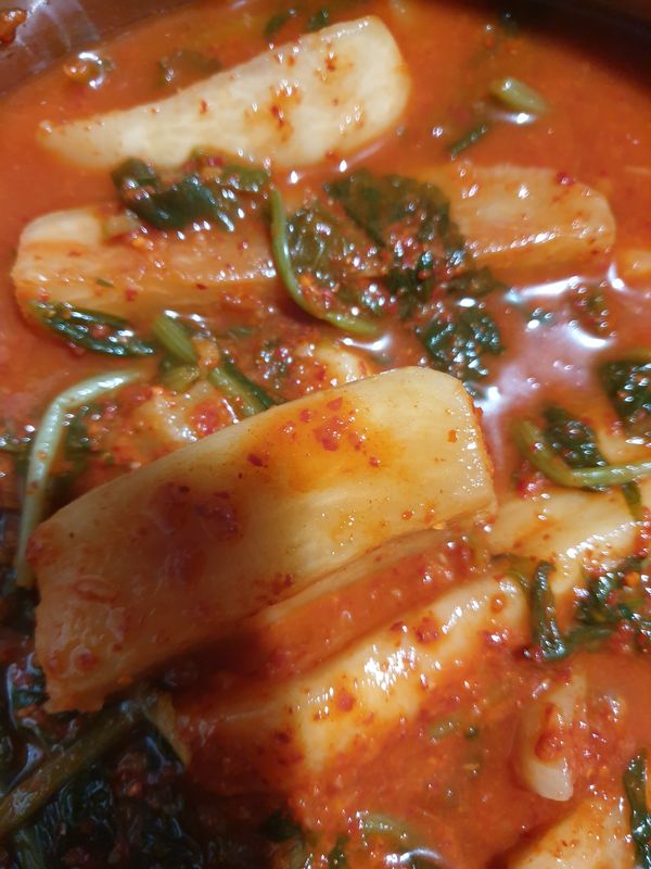 맵거나 많이 달지 않아 좋아요. 그런데 무가 그리 아삭하지는 않아요. 그냥 괜찮아요.