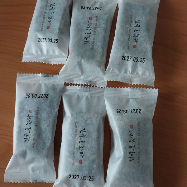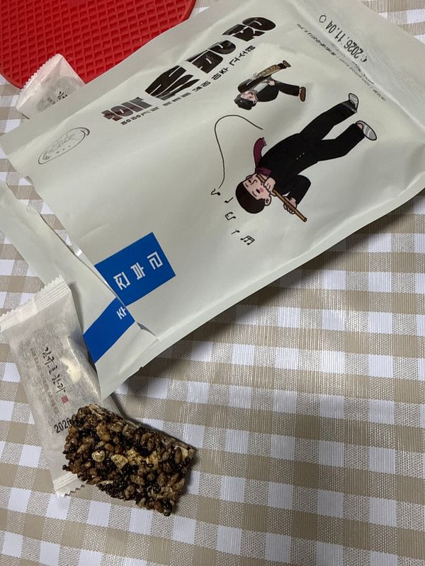 달지 않고 강정치고 부드럽습니다. 한번 먹으면 2,3개는 먹어야 손을 놓게 됩니다. 개별포장이라 산패 위험이 없어 좋습니다.