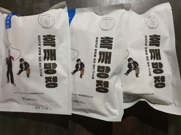 흑깨 13.3%입니다 흑미가 들어 있어 까맣게 보임 달짝지근 맛있어요 깨가 더 많으면 좋겠어요 조금 더 고소했으면 맘은 좋아요