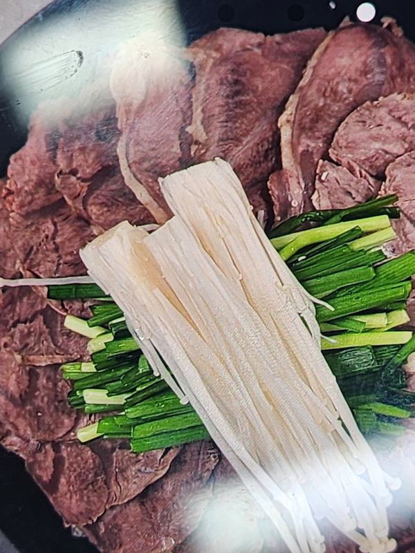 육수는 별로인데 집에 있던 사골육수로 진하게 먹엇어요 고기는 부드럽고 맛있어요