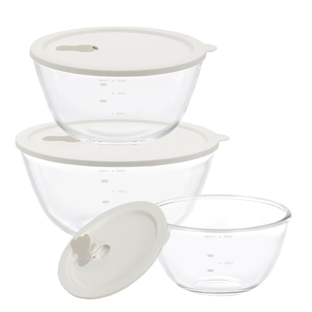 내열유리 계량 믹싱볼 실리콘 뚜껑 세트 2.7L / 전자레인지 오븐글라스 스팀홀