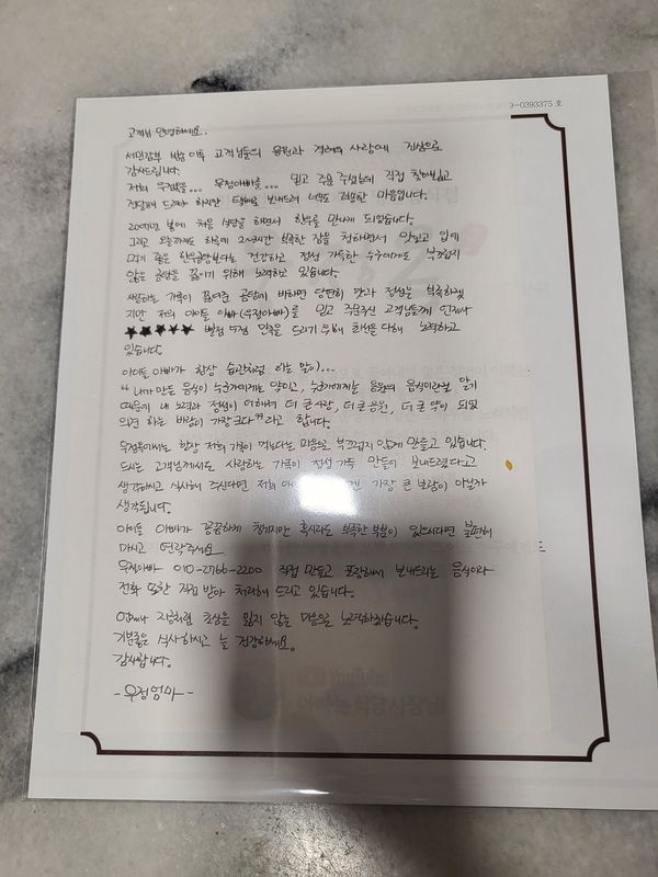 이건 말이 필요없어요~ 두번째 주문인데 이번엔 정성스런 편지와 함께 왔네요. 믿음이 퐉!