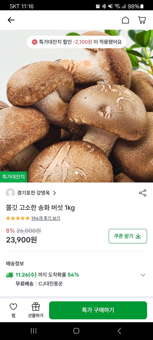 버섯 상태 좋고 쫄깃하고 맛있어요 샤브랑 구이해서 먹었어요