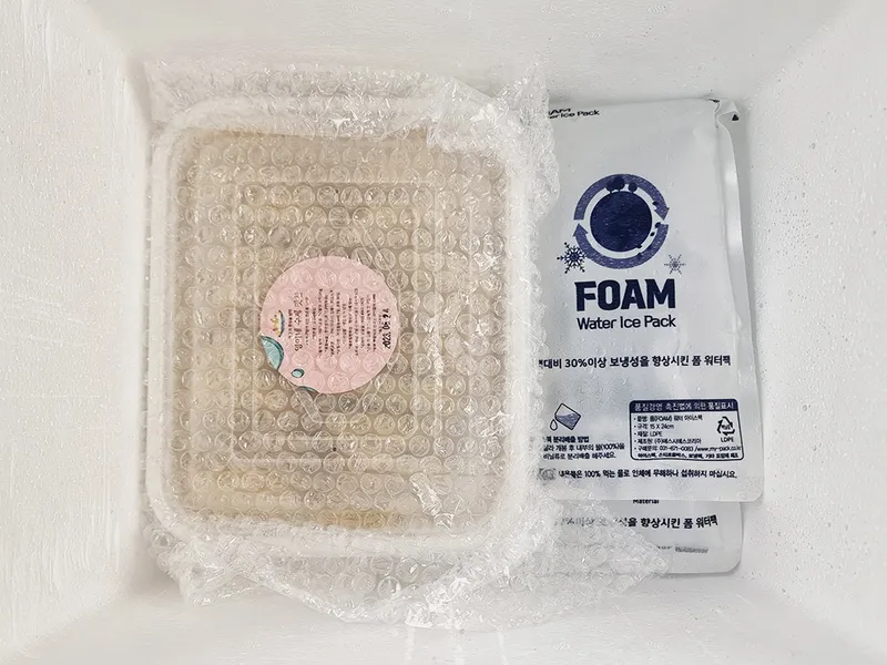 다음 날 상품을 수령하실 때까지 냉기를 충분히 유지할 수 있도록 아이스팩 꼼꼼히 넣어드리니 걱정없이 맛있게 즐겨주세요.