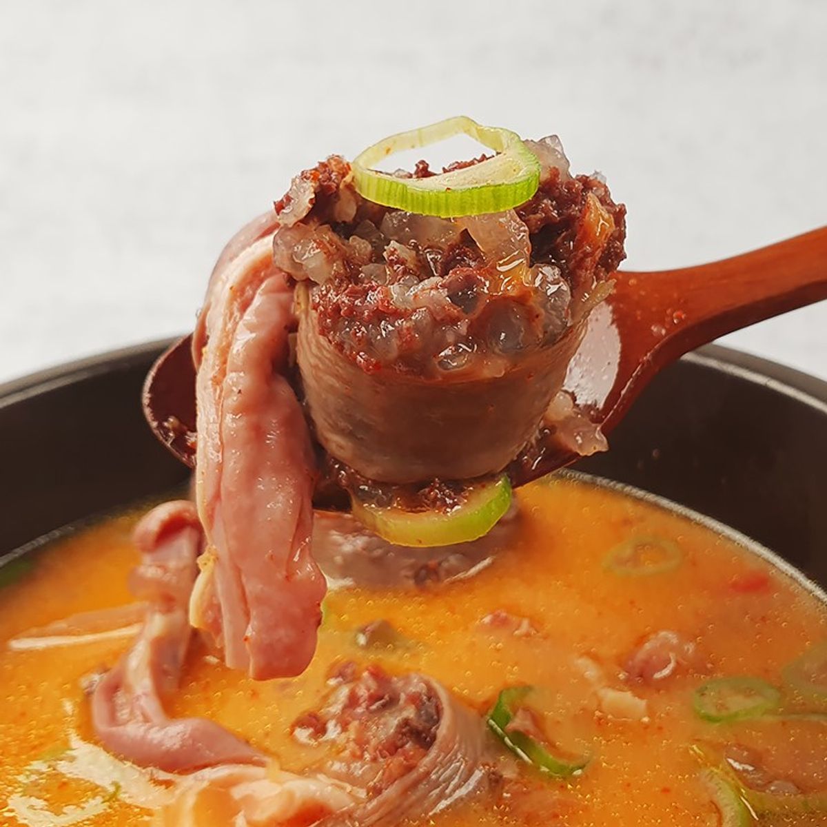 맑은 공기와 바다의 청정 제주에서 온 국내산 머릿고기, 오소리감투, 곱창을 아낌없이 담아 푸짐한 순댓국입니다. 아삭아삭 신선한 국내산 천연재료로 맛을 내어 깨끗하고 잡내가 없는 것이 매력입니다.
