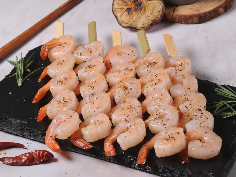 허브와 갈릭이 통통한 새우 위에 솔솔 뿌려져 있는 허브갈릭 새우꼬치입니다. 새우의 감칠맛과 허브의 향긋함이 더해져 한 번 먹으면 계속 먹고 싶어저요.