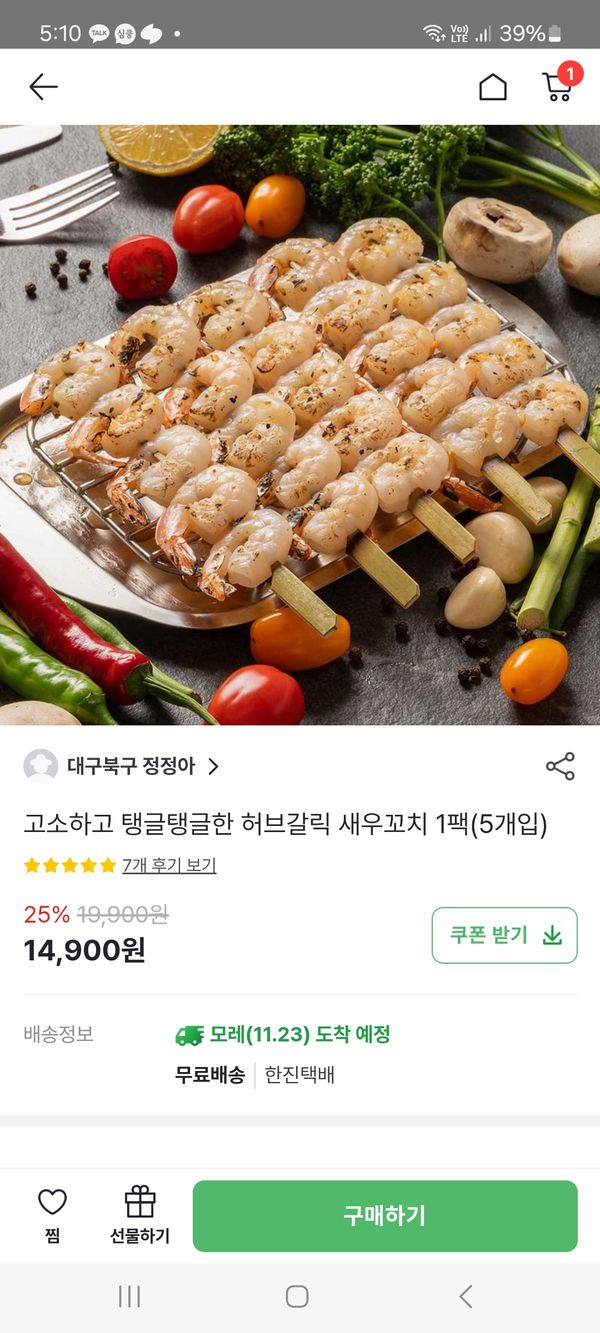 포장도 꼼꼼하고 배송도 빨라요 허브갈릭 새우꼬치가 고소하고 쫄깃해서 감칠맛나게 맛있어요