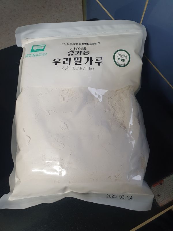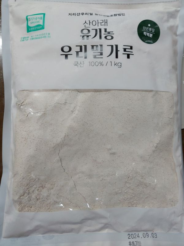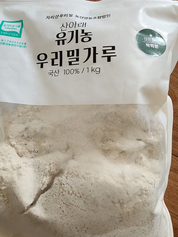 유기농밀가루를 찾는중에 지리산 우리밀이라해서 주문해봤어요 표기로봐서는 품질이 뛰어난것같네요 맛있는 묵은지부침해먹으려합니다~