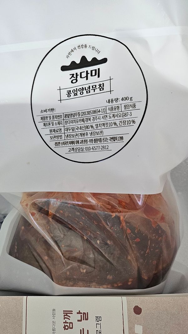 경상도의 맛~어렸을때 먹었던 콩잎이 생각나서 주문했어요~뻣뻣하지 않은 여린잎사용으로 먹기좋네요~가격대비 양은 좀 적은듯 합니다~포장은 좋습니다~