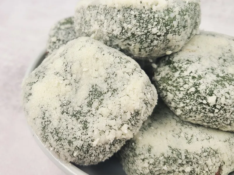 쑥향 짙은 찹쌀떡에 부드러운 팥앙금을 아낌없이 꽉 채워 넣은 쑥 찹쌀떡입니다. 겉면엔 카스테라 가루를 묻혀 고소한 풍미를 더했죠.