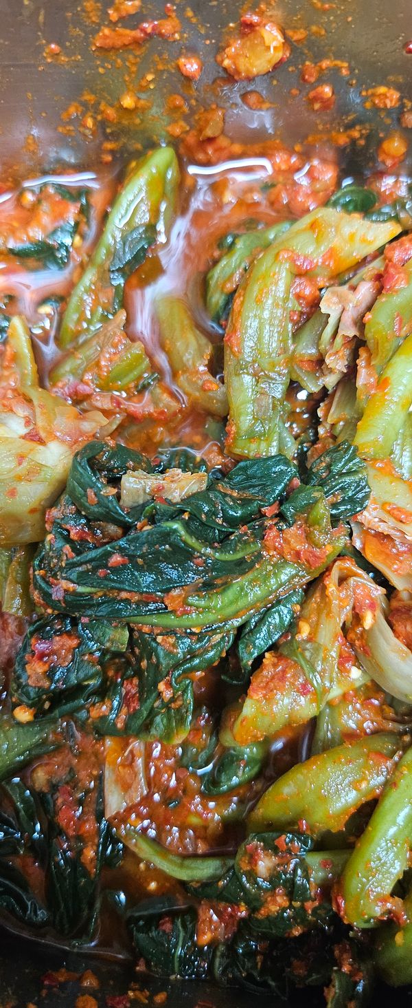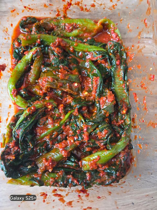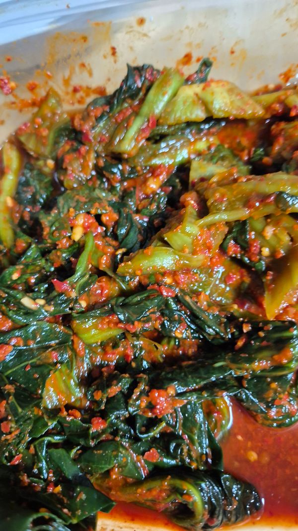 익은 맛이지만 갓김치 취향따라 다르겠지만 숙성되면 더 좋아하는 입맛이라 좀더 익어도 좋아요 맛있어요