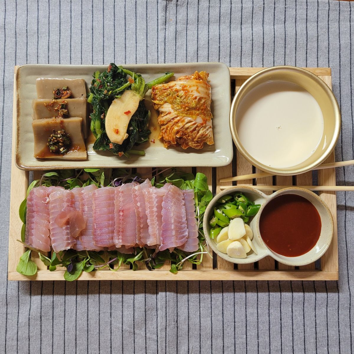 오랜만에 홍어삼합해서 막걸리 한병.. 인생별거있나요 이게 행복인가요..ㅎㅎ