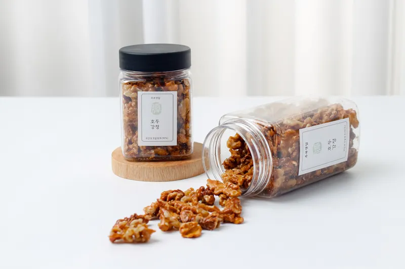 충북 영도의 고랭지에서 생산된 호두만을 사용한 100% 국내산 호두로 만든 강정이에요. 그 덕분에 우수한 품질은 물론, 안심하고 드실 수 있답니다. 또, 주문 시 수제로 제조하여 더 신선한 호두 맛을 경험하실 수 있어요.