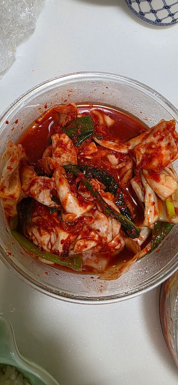 양배추가 좋다고해서 자주먹을려고 하는데 여태 쪄서 쌈으로만 먹었는데 김치로도 먹으니 좋네요