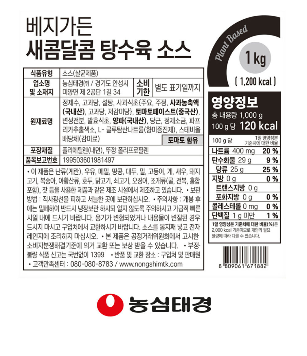 [G] 베지가든 탕수육소스 1kg (식물성) 2개