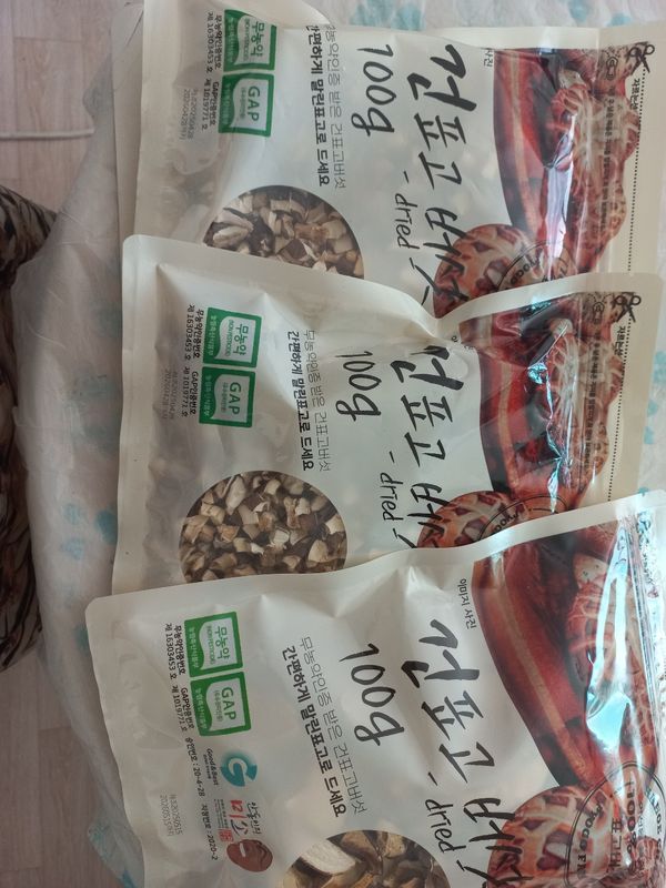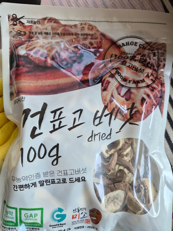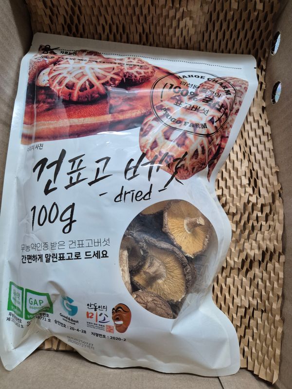 깔끔하고 깨끗하게 건조된 표고버섯이 왔어요 향도 너무 좋아요 큐브는 조금씩 소분해서 작은 지퍼백에 넣고 슬라이스는 커다란 지퍼백에 넣어 두었어요