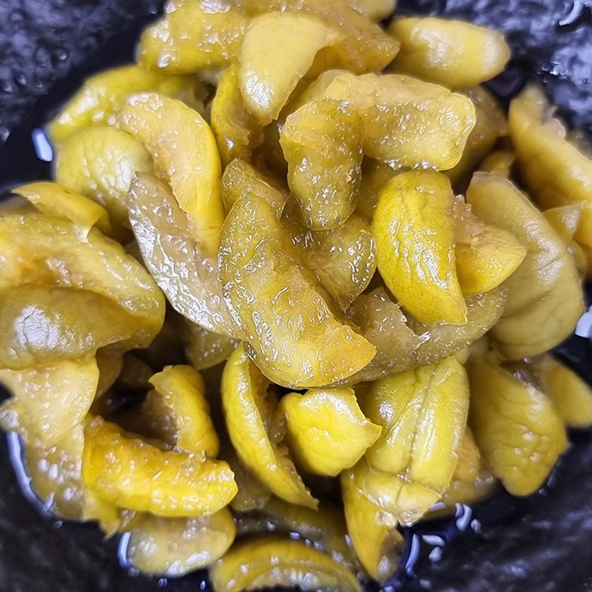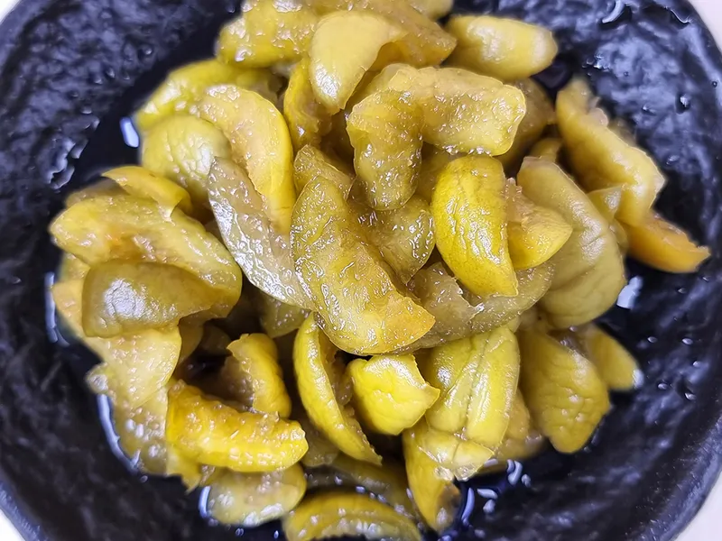 남다른 아삭함에 놀라실 거예요! 다른 매실장아찌와 다른 독보적인 식감을 자랑합니다. 저만의 기술력으로 시중의 다른 장아찌나 오이소박이처럼 짓무르지 않고, 3년이 지나도 아삭아삭한 식감이 그대로 유지된답니다. 누룽지나 맨밥에 매실장아찌만 올려서 드시면 밥 한 그릇 뚝딱! 이만한 밥도둑이 또 없죠. 충분히 숙성되어 새콤달콤한 맛이 일품입니다.
