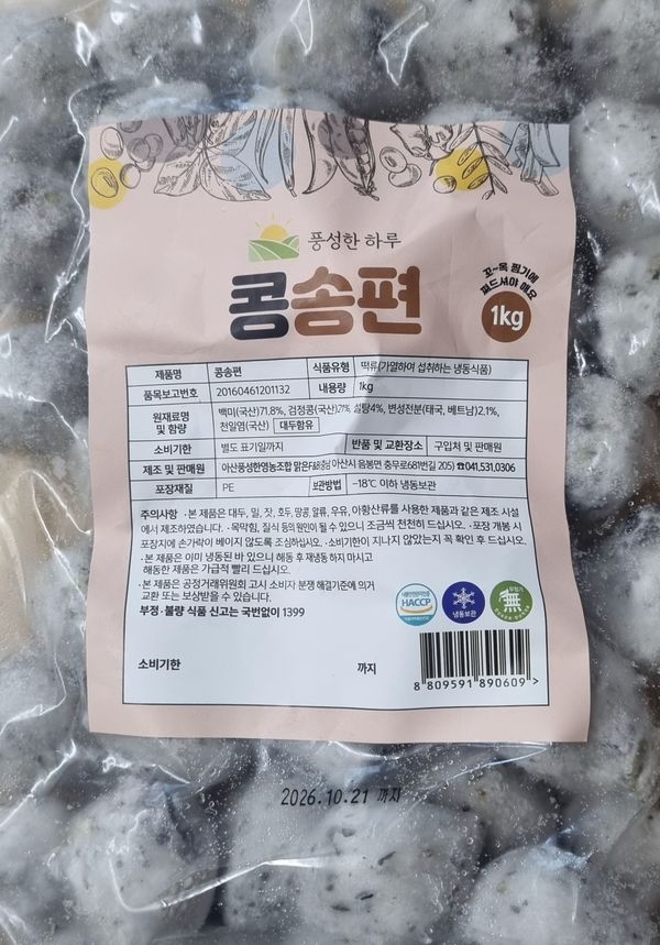 쫄깃쫄깃하고 속에 콩이 가득찼어요~ 너무 맛있어서 방금 엄마한테 보내드렸어요!