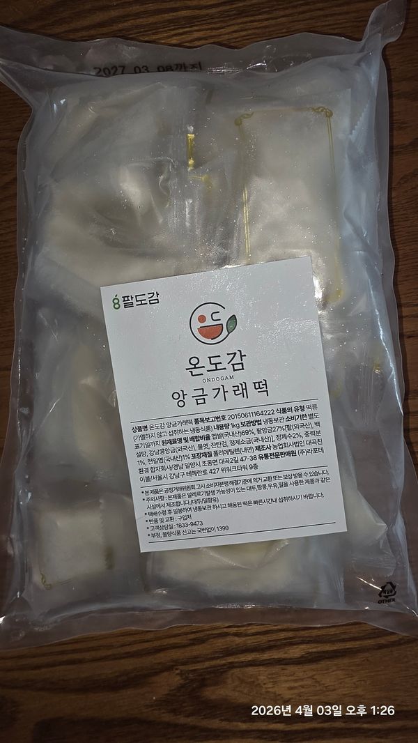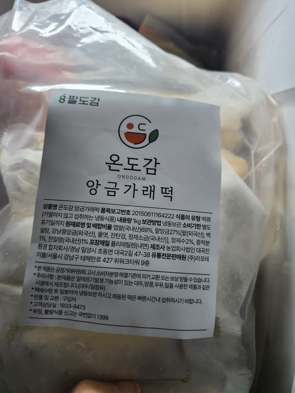 왔을때 녹아있어서 딸래미가 맛있게 먹었는데 말이죠 냉동하고 다음날 6시30분에 떡을 실온에두웠는데도 8시까지 ..완전히 말랑거리지 않았어요 딸래미가 너무기다려서 렌지에 돌려주래서..그럼 맛없다고도 했는데 그래도 돌려달라해서 돌려주니..맛이 없다해서..꿀 줬습니다