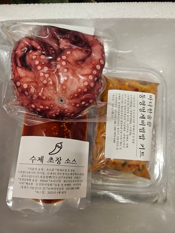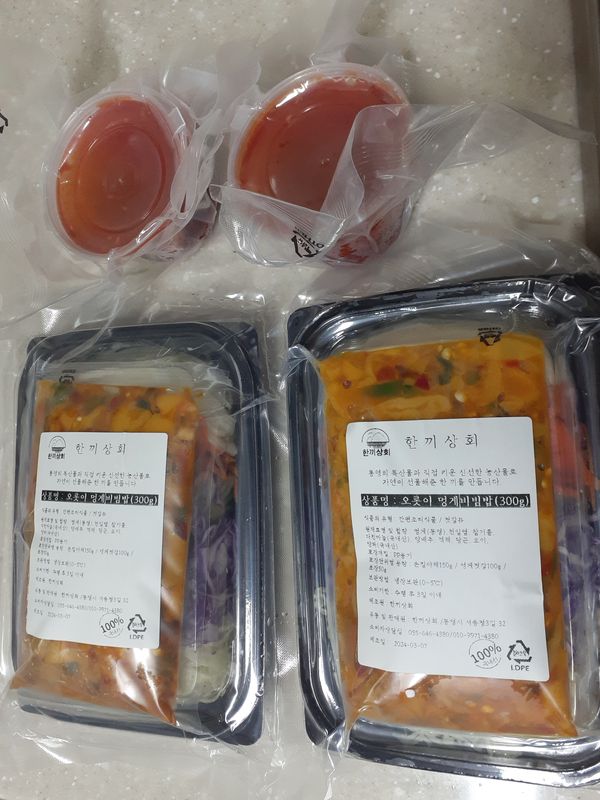 신선해요.멍게향이 진하고 야채와 어우러진 비빔밥 맛이 좋습니다. 한 수저씩 입에 넣을때마다 퍼지는 멍게향과 맛에 음~하는 소리가 저절로^^~저는 초장을 추가 주문했는데 보내주시는 초장으로 충분했어요. 맛있게 비벼 제철인 감태에 싸서 먹는것도 별미였답니다. 포장과 배송도 완벽해요~ 맛있게 잘 먹었습니다. 감사해요~ 손님 초대용 음식으로도 손색이 없을듯 싶네요~