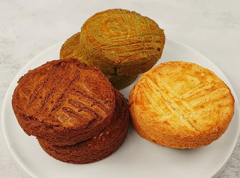 비건으로 만든 갈레트브루통은 더욱 특별합니다. 동물성버터 없이도 고소한 버터맛이 나며 차갑게 하면 바삭오도독 실온에 두면 부드럽게 파사삭 씹히는 고급스러운 맛의 디저트입니다. 커피는 물론 차와 드셔도 훌륭합니다.