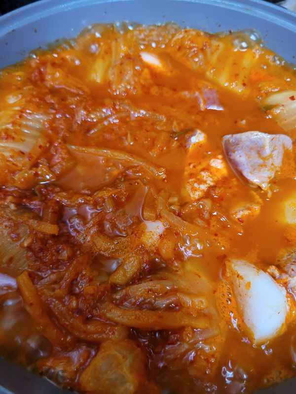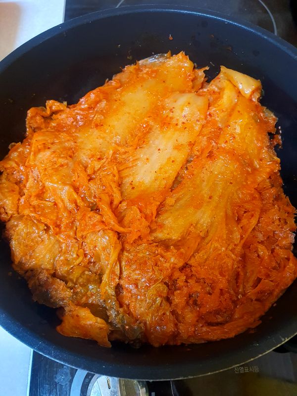 다른재료가 없어 그냥 김치찜만 끓여 먹었는데, 물 좀 넣고 끓여먹어도 맛있게 먹었습니다. 다른 재료 더 넣어 먹으면 맛있겠줘~