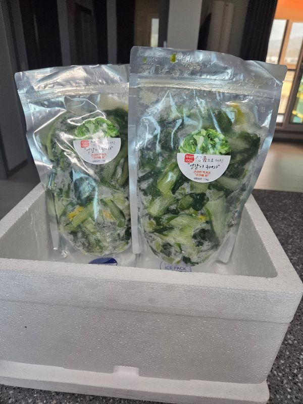 옵션: 데친 얼갈이 우거지 1kg*2팩