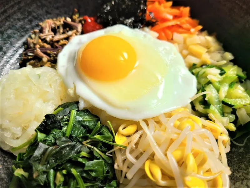 계란 프라이와 참기름을 둘러서 같이 비벼 드시면 더욱 맛있게 드실 수 있습니다.