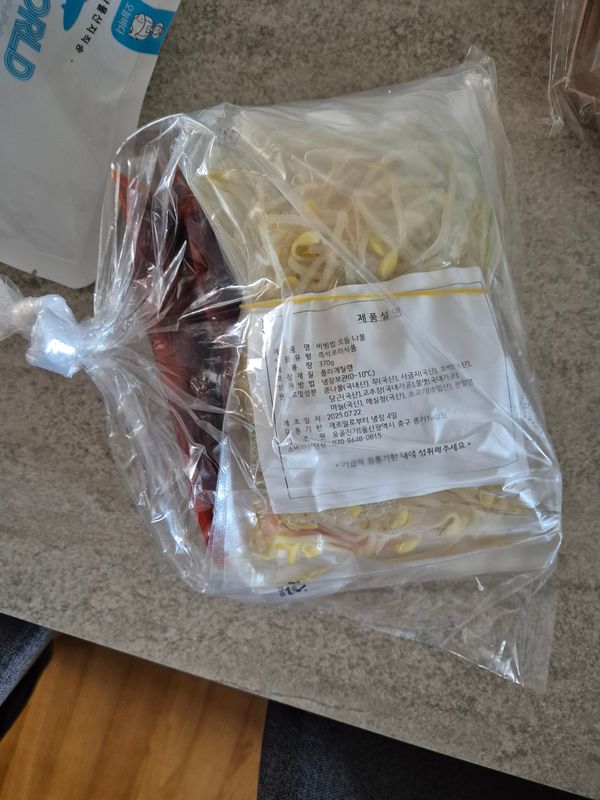 이더위에 아이스팩을 한개만 넣어서 다녹아서 왔네요 다른 나물은 괜찮은데 무나물이 넘익어서 버렸네요 쉰내가 넘 많이 나네요ㅠ