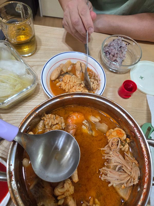 양념도 좋고 알과 고니양 적당해서 둘이먹기 좋습니다. 저희는 쑥갓사서 더 넣어 끓여먹었어요