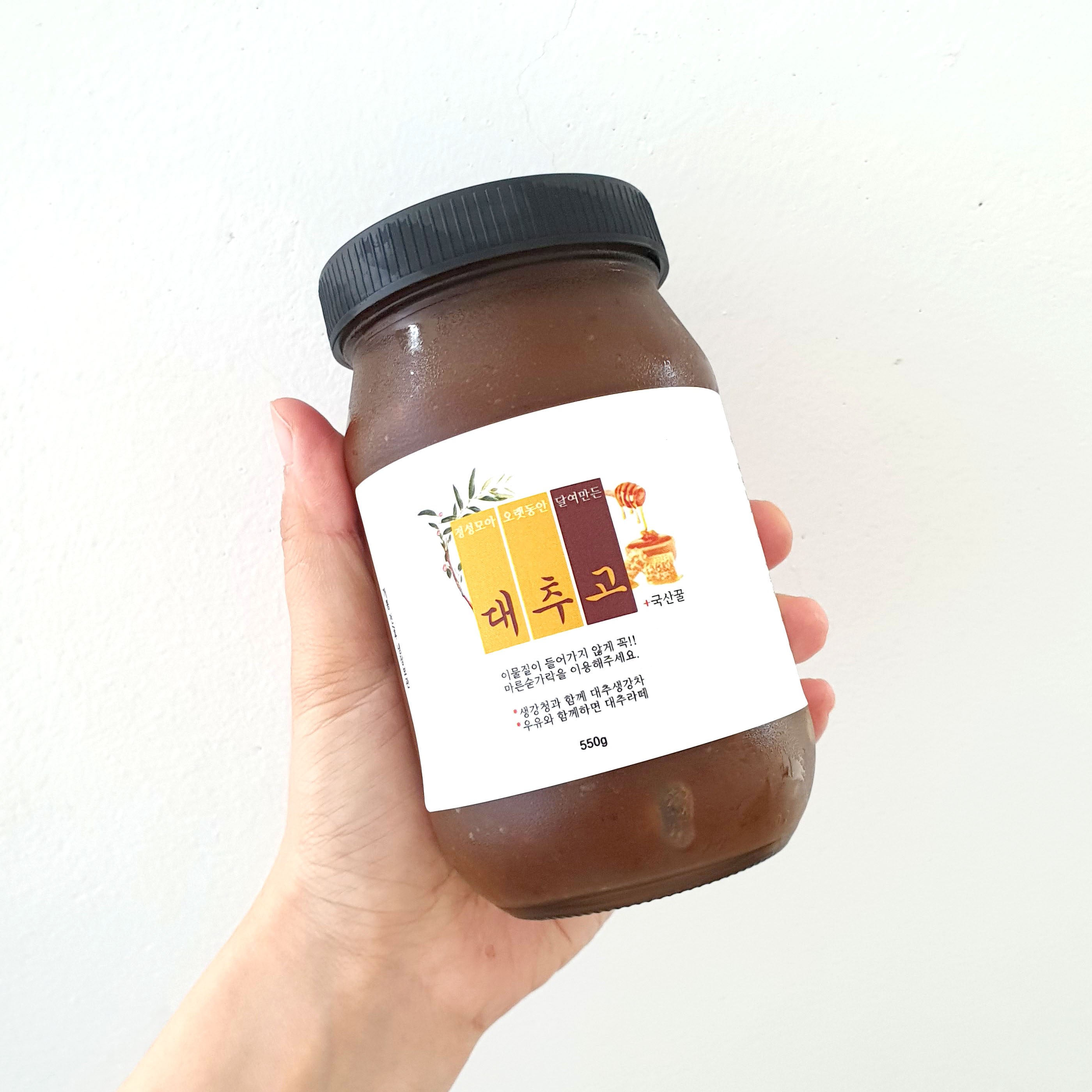 경산 대추 중에서도 당도 높은 특열과와 특초를 사용했어요. 국산 사양 꿀·국산 생강·유기농 설탕만을 사용하여 만듭니다.