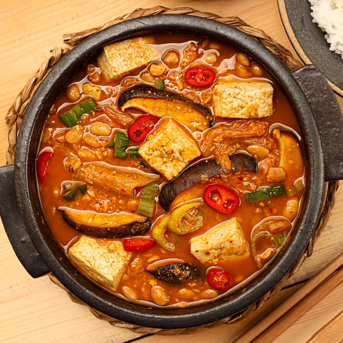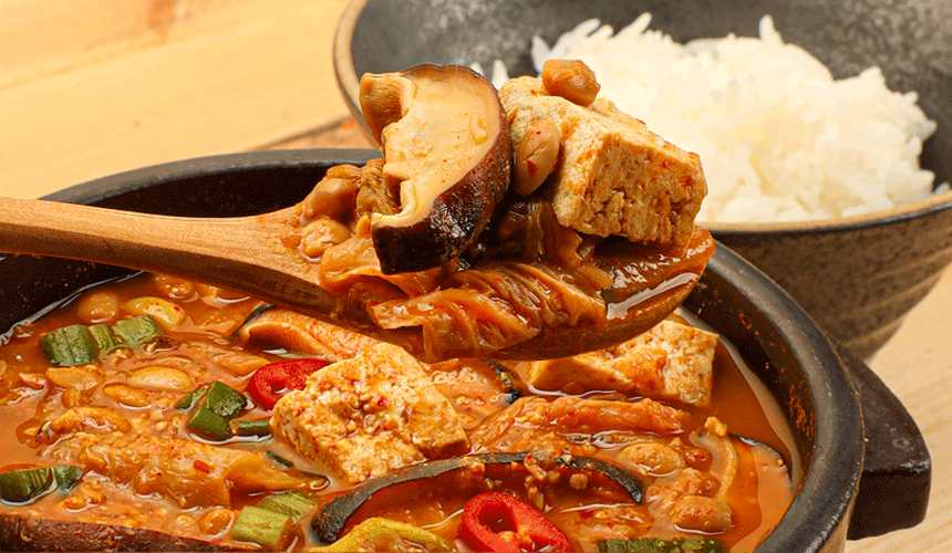 엄마 손맛 그대로! 진하고 구수한 청국장 본연의 맛을 그대로 담았어요. 전통 방식으로 오랜 시간 숙성한 청국장에 국내산 김치와 대파를 더해 깔끔하고 시원한 맛까지 살렸습니다. 고소한 국산 두부와 향긋한 표고버섯은 재료 본연의 풍미를 더해줘요.
