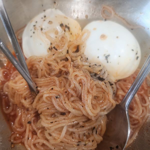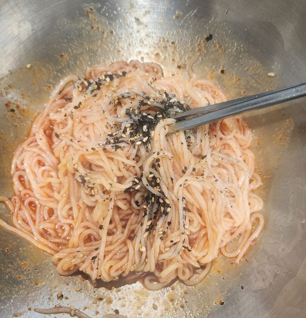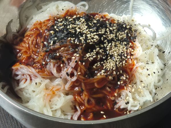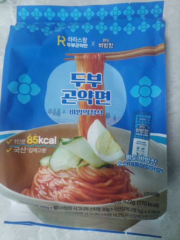 삶지 않고 찬물에 바로 헹궈 먹을 수 있어 좋고 면도 쫄깃하고 양념도 매콤하니 맛있어요. 칼로리도 낮고 소화도 잘 되어 다이어트 하기에 딱 좋아요.