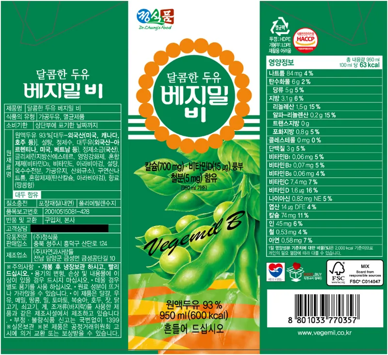 고객님들께 좋은 두유만들 제공해드립니다. 고소하고 담백한 베지밀 두유예요.