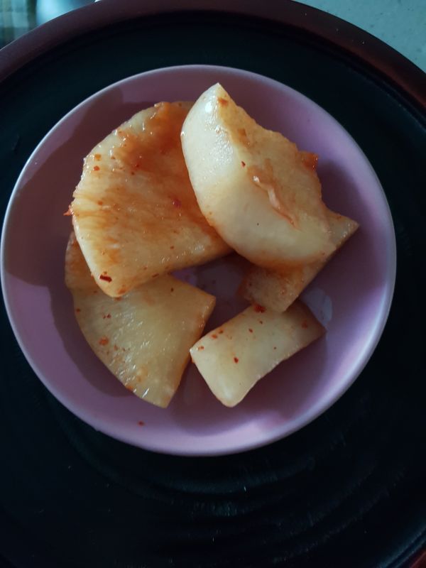 아직 덜 익어 맛은 모르겠는데 무는 아삭하네요
