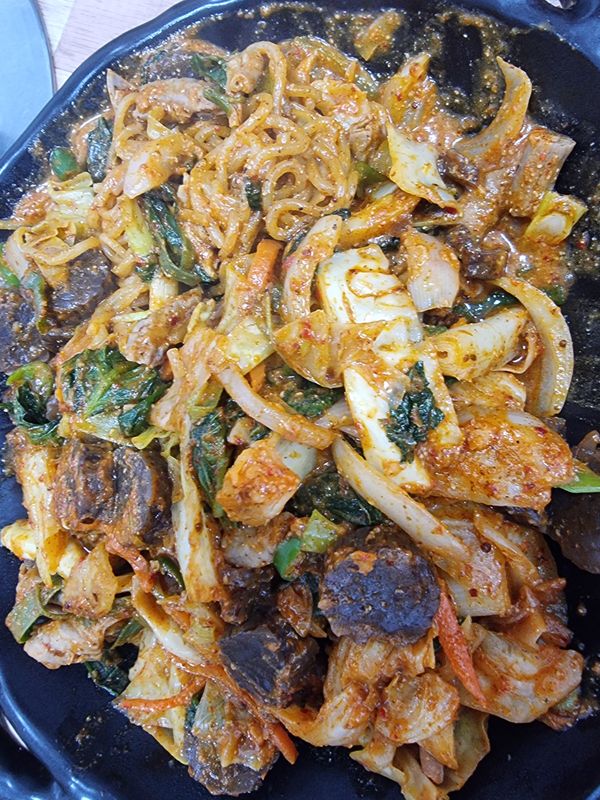 ㅈ난번 전골을 시켜 너무 맛나게 먹고 이번에 순대곱창뽁음을 시켰는데 냉동실 보관했다가 꺼내서 볶는데 순대가 다풀어져버려서 죽처럼 되었어요ㅠ 절대 냉동니키면 안되겠더라고요 소스는 맛있었어요^^