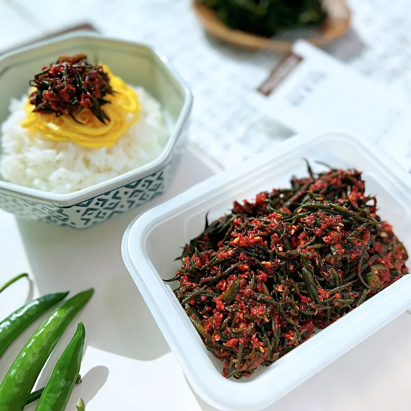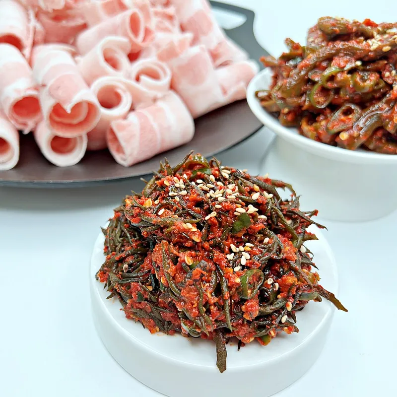 고기와 함께 드시면 땡초 톳무침의 매콤함이 고기의 느끼함을 싹 잡아줍니다. 흰쌀밥에 곁들이거나 비빔밥 재료로 활용하셔도 좋습니다.