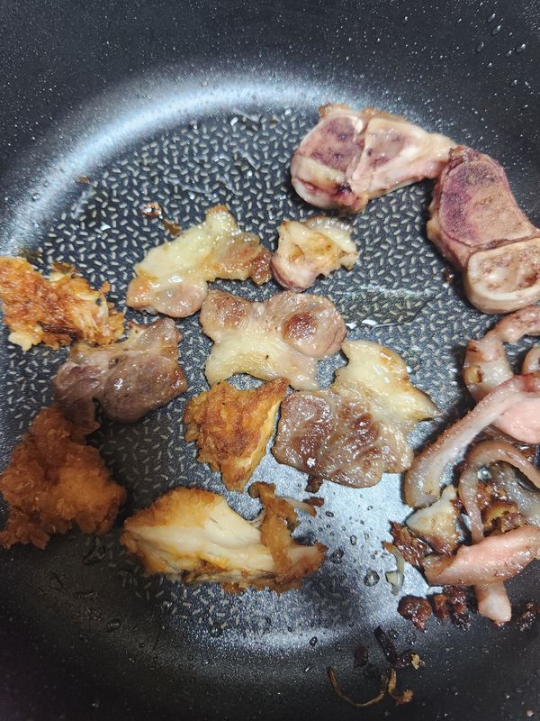 먼저 한번 삶아서 물버리고 된장이랑 월계수넣어 완전 삶아익힌후 에프에 구워서 술안주. 맛나네요.먹기편하고. 근데 생각보다 양이 좀적어서.