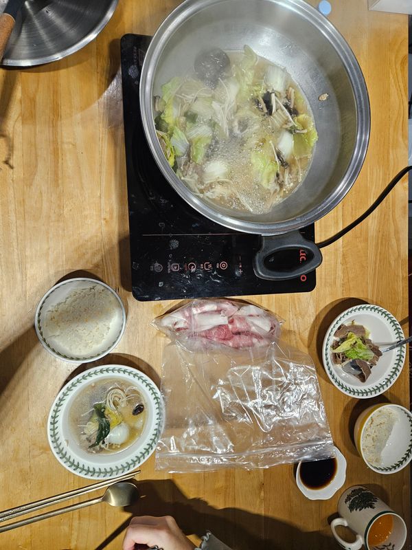 샤브샤브가 완전 끓여서 오니 좋네요 집에 있는 차돌박이 추가해서 완전 맛나게 먹었어요