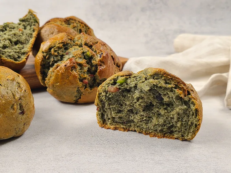 국내산 쑥과 쑥가루를 사용해 담백한 쑥빵을 만들어냈습니다. 자극적이지 않고 슴슴한 맛으로, 건강한 재료로 만들어 먹고 난 후에도 속이 더부룩하지 않아요. 너무 딱딱하지 않아 남녀노소 누구나 부드럽게 즐기실 수 있어요.